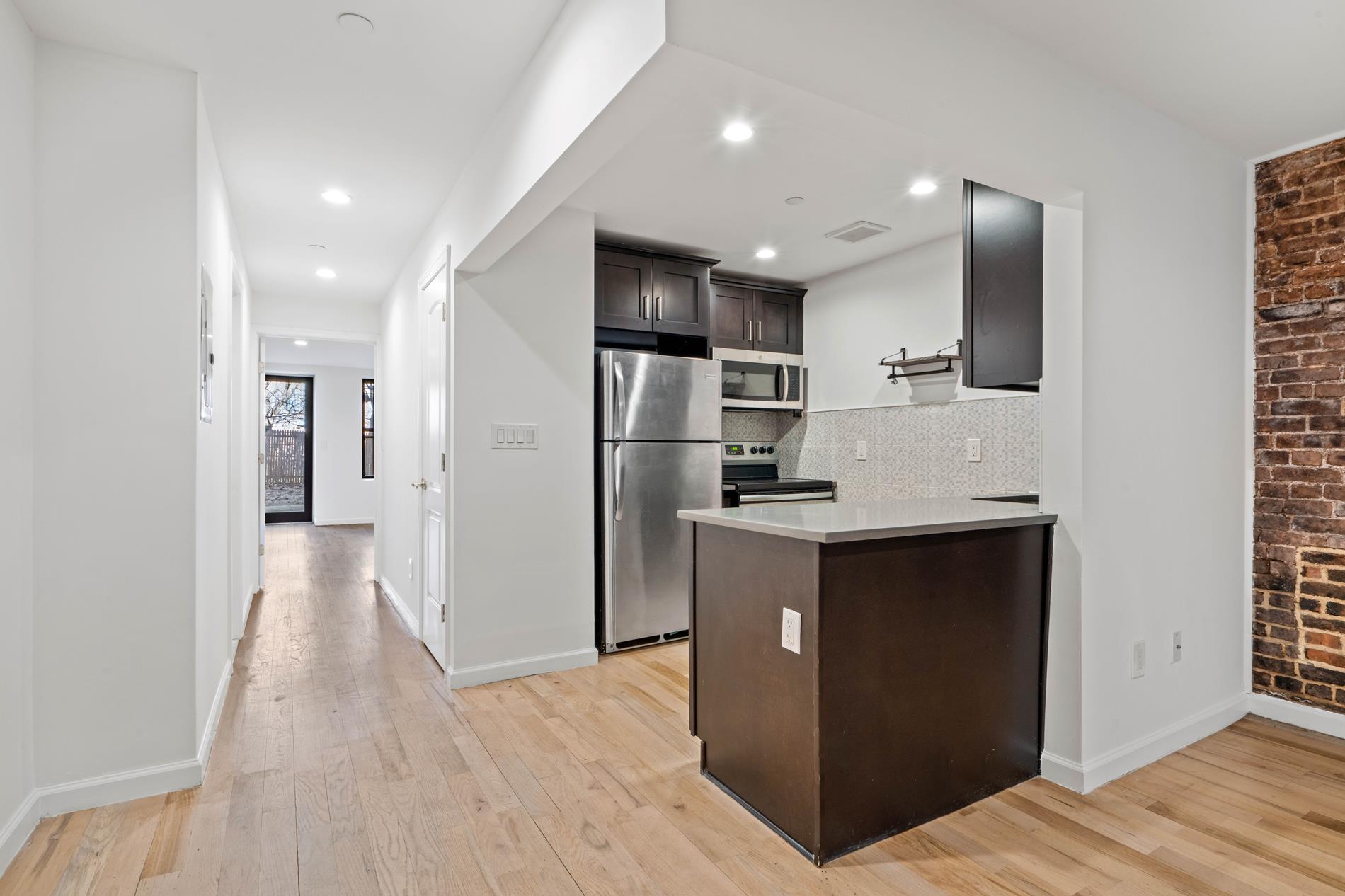 Fantastic Garden floor apartment with all new stainless steel appliances. This spacious one-bedroom, two-bath unit features a new beautiful unit features new beautiful hardwood floors, exposed brick, and two baths!