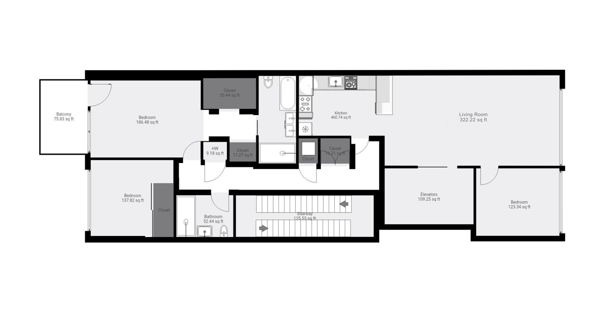 Housing approximately 1,426 square feet, unit 13 is awash with light thanks to the floor-to-ceiling windows and 9+ foot ceilings. Wide engineered hardwood floors and central air are a theme throughout the space. Thoughtfully placed recessed lighting and an in-unit washer & dryer complete the provident fixtures of the home. Like icing on top, is access to a common roof deck with a grill and mesmerizing sky and city-skyline views.