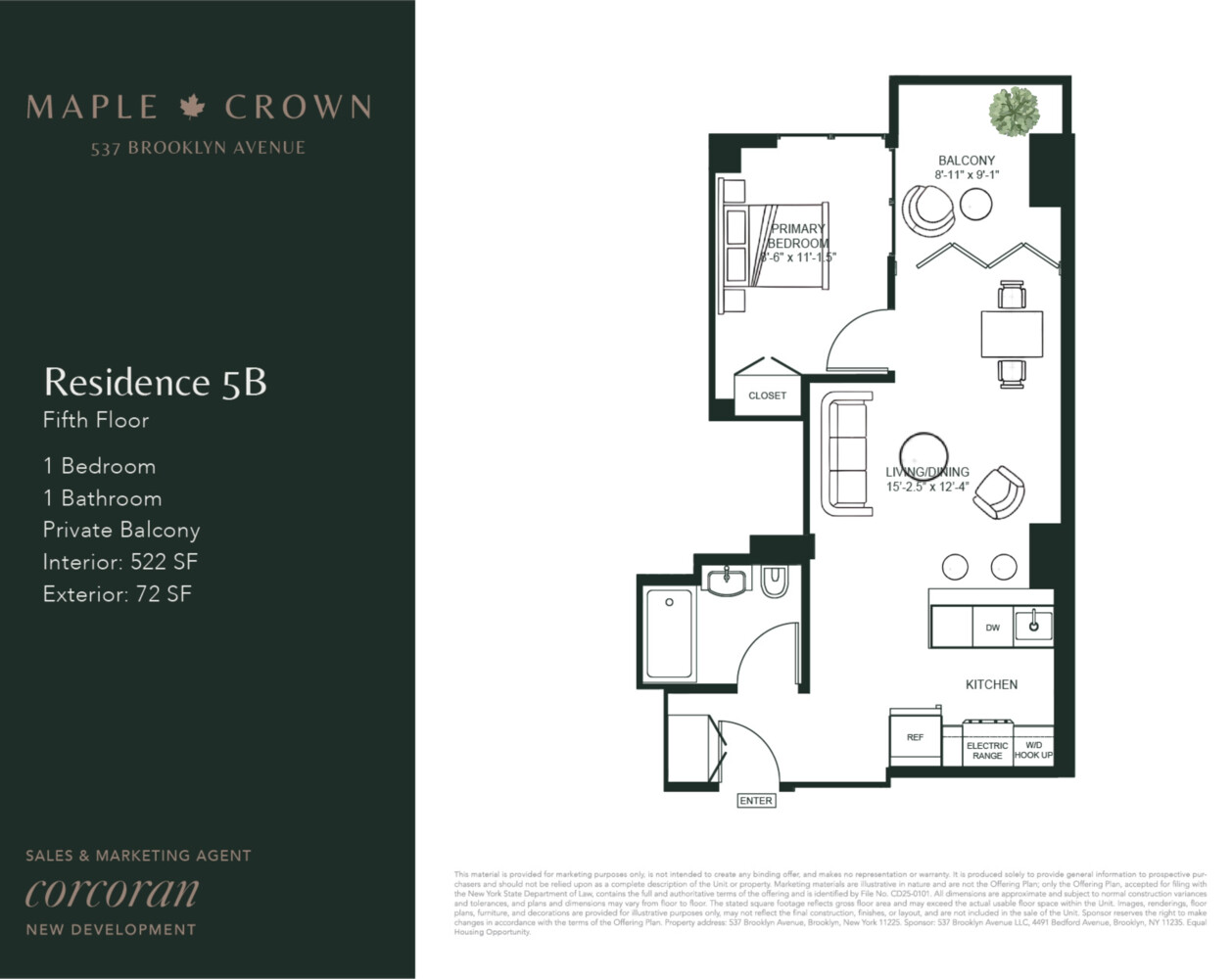 This is not an offering. The complete Offering Terms are in an Offering Plan available from Sponsor. File No. CD25-0101. Any layouts, square footages, dimensions, and descriptions are general and approximate and subject to normal variances and tolerances. Some materials, finishes, fixtures, or appliances may vary by apartment. Sponsor reserves the right to make changes in accordance with the terms of the Offering Plan. Property address: 537 Brooklyn Avenue Brooklyn, New York 11225. Sponsor: 537 Brooklyn Avenue LLC. Sponsor address: 4491 Bedford Avenue, Brooklyn, NY 11235. Equal Housing Opportunity.